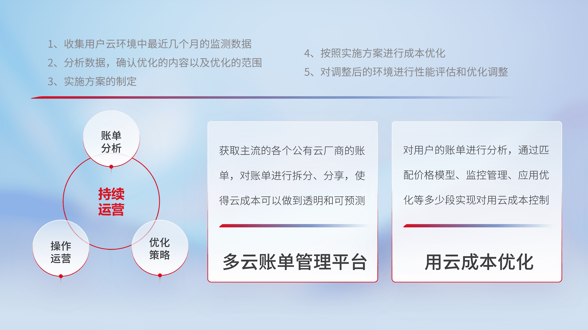 监控业务系统资源开销,,对资源的消耗精确计量,,,实现费用的透明化管理,,,不断提升资源使用率,,,,调整资源购买方式,,,降低资源费用成本,,,,用云成本可预测、、、、用云费用可优化,,云资源配额有据可依。。